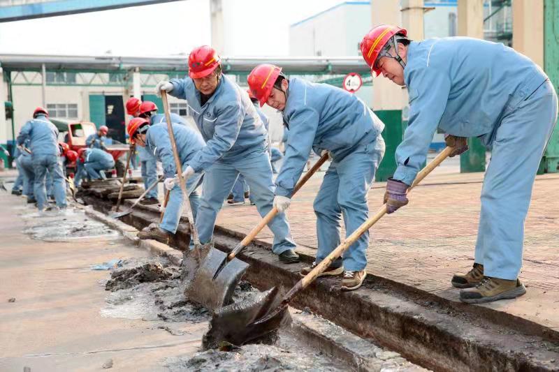12月19日下午,堿業公司黨委書記、董事長張衛民帶領公司黨委班子成員、機關單位部分黨員到煅燒生產裝置現場開展黨員義務勞動,重點對2#、12#路地溝進行清污排淤。