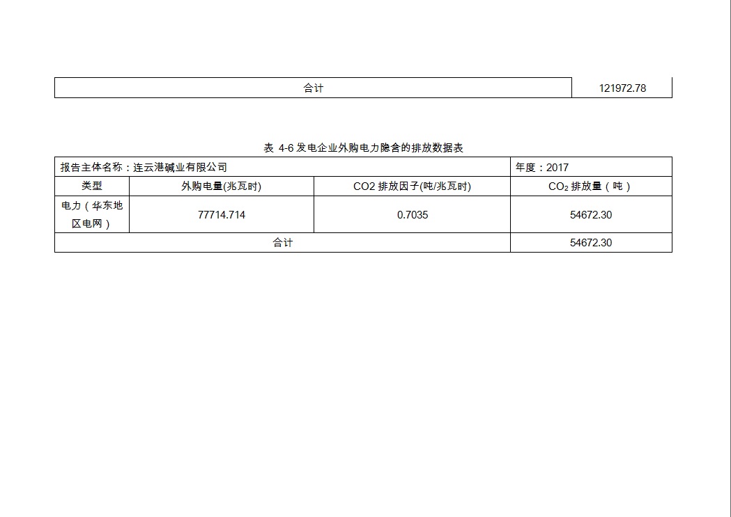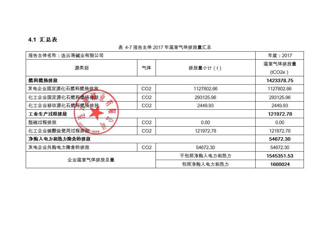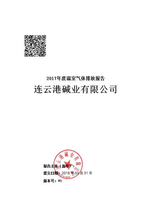 連云港堿業(yè)有限公司2017年度溫室氣體排放報告