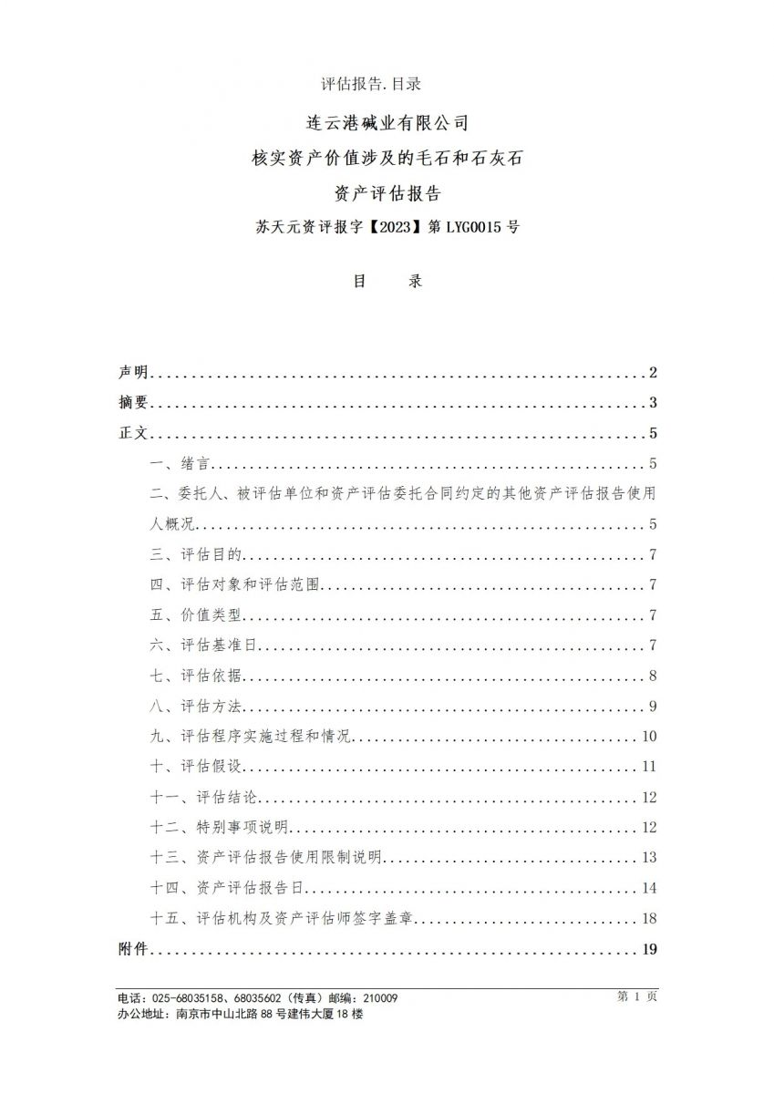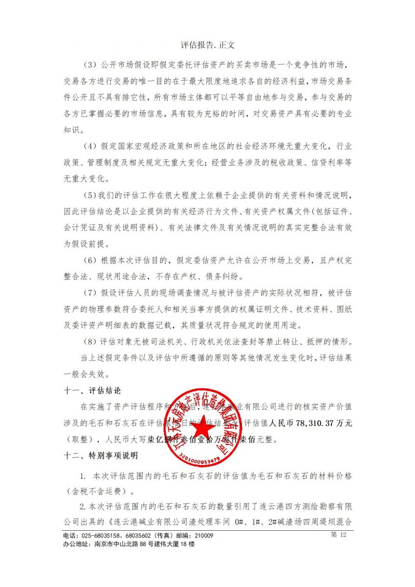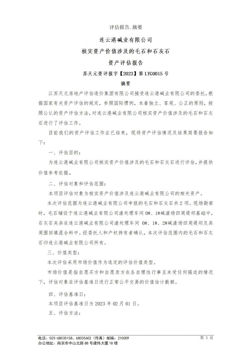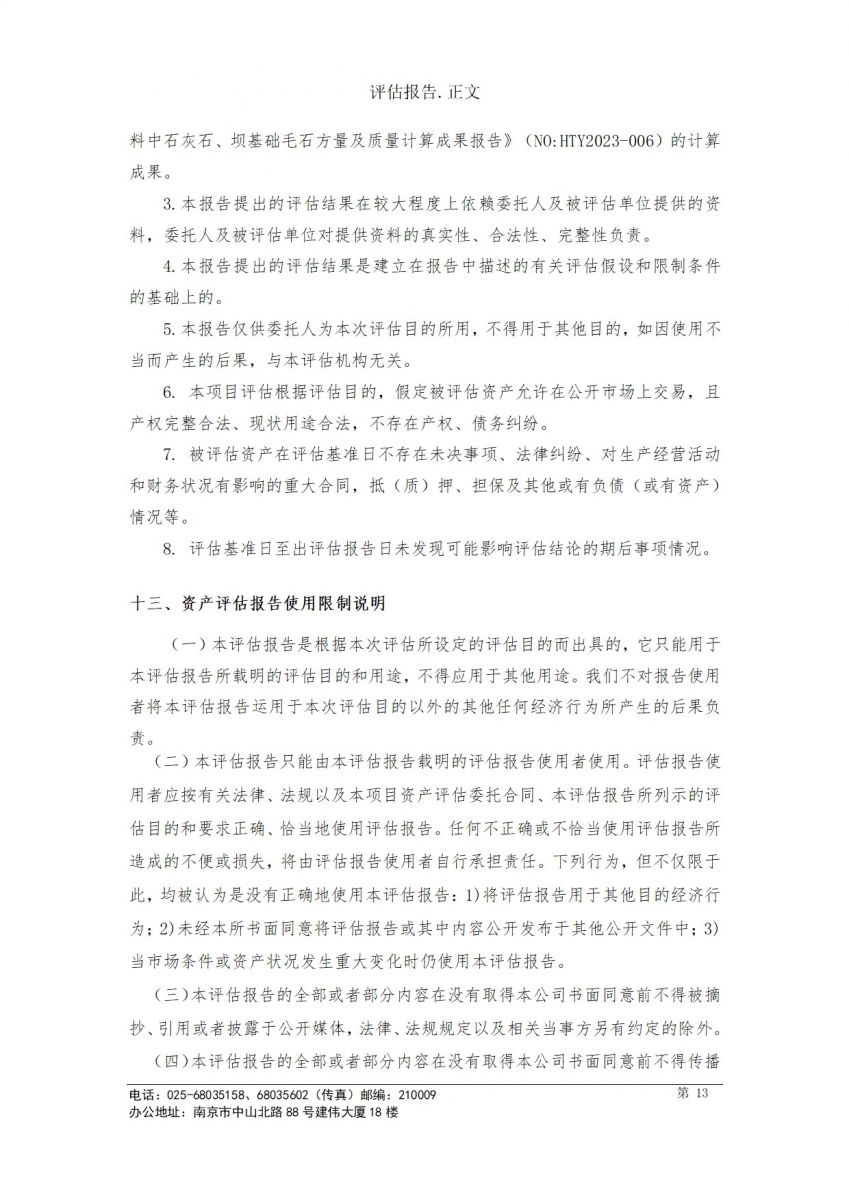 毛石和石灰石資產評估報告