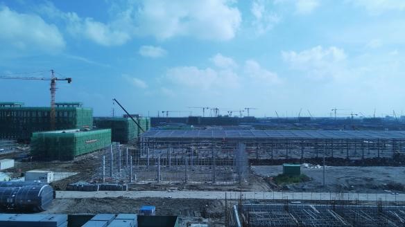 ⑴聯(lián)堿一標(biāo)段101b聯(lián)堿辦公樓砌體及二構(gòu)施工;152中心控制室鋼結(jié)構(gòu)屋面安裝,基礎(chǔ)磚墻±0m以下砌筑;151化驗中心地坪以下砌體施工準(zhǔn)備;340機電儀維修廠房鋼結(jié)構(gòu)屋面工程,廠家預(yù)制加工完成;510重堿車間蒸吸罐區(qū)其他非標(biāo)設(shè)備基礎(chǔ),V51301A/B頂板及加強筋拼裝、V51301A溢流箱內(nèi)加強筋安裝;532重灰工段深基坑接樁,土方回填;280b換熱站屋面鋼結(jié)構(gòu)工廠預(yù)制基礎(chǔ)磚墻±0m以下砌筑;550壓縮及冷凍裝置空冷器框架,廠房基礎(chǔ)澆筑。