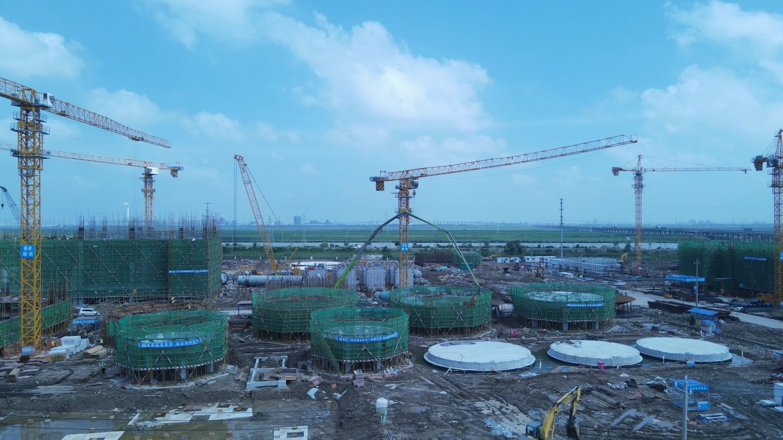 ⑸合成氨二標(biāo)段271原料煤儲運破碎樓三層底板放線,#1轉(zhuǎn)運站頂層梁板柱澆筑,#2轉(zhuǎn)運站三層支撐架搭設(shè),鋼筋綁扎、支模,角撐、斜撐、圍檁安裝;820合成氨循環(huán)水站清凈廢水池上部結(jié)構(gòu),塔下水池墻壁支模;711煤漿制備二層腳手架搭設(shè),鋼筋綁扎,支模,安裝預(yù)埋件,初期雨水池池壁鋼筋綁扎,支模,支撐架搭設(shè),套管安裝;762壓縮機廠房上部結(jié)構(gòu)支模;761冷箱基礎(chǔ)冷箱防護墻拆模;膨脹機房上部結(jié)構(gòu)鋼筋綁扎;712氣化框架立柱腳手架搭設(shè),鋼筋綁扎,基礎(chǔ)承臺鋼筋綁扎,支模,防腐;灌注樁施工;842空分機柜間鋼筋綁扎;713渣水處理集渣池鋼筋清理,設(shè)備基礎(chǔ)預(yù)埋螺栓安裝。